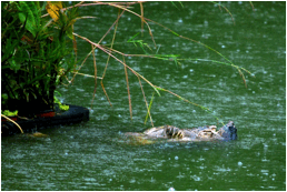 By the time I got back to Anderson Pavilion, even the energetic turtles had decided to call it quit. The pond was quiet, disturbed only by the raindrops. The giant turtles must have dived into the water and taken very much needed rest. I had also decided to go home after only one round of walk. My shoes and pants were soaked wet, but I was really amazed.
