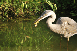 The great blue heron’s right toes might have been bitten by a snapping turtle