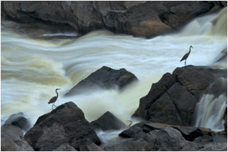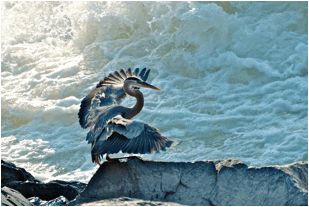 To me, a great blue heron is very much like P’eng. Anyone who goes to Great Falls would be greatly awed by its beauty and its creative and destructive forces. The valley can symbolize the womb of the universe as described by Lao Tzu and Chuang Tzu. Great blue herons are simply the most majestic and georgeous birds there, as shown in the following photos taken at Great Falls in August, 2011.